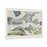 Üveg kép - Geometriai kompozíció zöld és szürke színben - 70x50cm - Kompozíció üveg mögött - Modern fali dekoráció nappalihoz és hálószobához ARTTOR