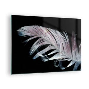 Üveg kép - Egy finom toll fekete alapon, művészi megközelítésben - 70x50cm - Gondolj az érintésre - Modern fali dekoráció nappalihoz és hálószobához ARTTOR