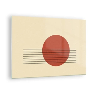 Üveg kép - Minimalista grafika piros körrel és vonalakkal - 70x50cm - Körbe és tovább - Modern fali dekoráció nappalihoz és hálószobához ARTTOR