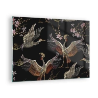 Üveg kép - Madarakat ábrázoló festmény egy japán tájképen, a Fuji-hegyre nézve. - 70x50cm - Japán lélekben - Modern fali dekoráció nappalihoz és hálószobához ARTTOR