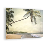 Üveg kép - Trópusi tengerpart pálmafával és hullámokkal - 70x50cm - Trópusi álom - Modern fali dekoráció nappalihoz és hálószobához ARTTOR
