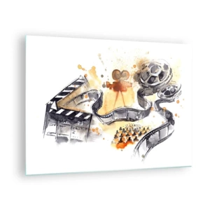 Üveg kép - Filmszalag és kamera művészi kompozícióban - 70x50cm - Az álmok földjén - Modern fali dekoráció nappalihoz és hálószobához ARTTOR