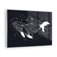 Üveg kép - Egy űrben lebegő bálna grafikus fehér sziluettje - 70x50cm - Az univerzum óceánjában - Modern fali dekoráció nappalihoz és hálószobához ARTTOR