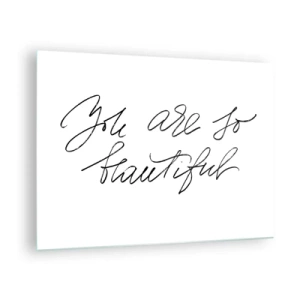 Üveg kép - „Olyan gyönyörű vagy” idézet elegáns, kalligrafikus stílusban - 70x50cm - Tényleg, hidd el... - Modern fali dekoráció nappalihoz és hálószobához ARTTOR