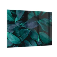 Üveg kép - Sűrű zöld levelek sötét háttér előtt - 70x50cm - Maga a zöldellő növényzet - Modern fali dekoráció nappalihoz és hálószobához ARTTOR