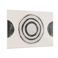 Üveg kép - Fekete-fehér absztrakt minta koncentrikus körökkel - 70x50cm - Az a fontos, ami a kettő között van. - Modern fali dekoráció nappalihoz és hálószobához ARTTOR