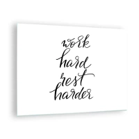 Üveg kép - Elegáns betűtípusú tipográfiai felirat: „dolgozz keményen, pihenj keményebben” - 70x50cm - Élet egyensúly - Modern fali dekoráció nappalihoz és hálószobához ARTTOR
