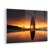 Üveg kép - Naplemente emberi sziluettel és sziklaalakzattal - 70x50cm - Csak te és a természet - Modern fali dekoráció nappalihoz és hálószobához ARTTOR