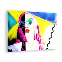Üveg kép - Stílusos nő kalapban és akvarell stílusú szemüvegben - 70x50cm - Florida üdvözli Önt! - Modern fali dekoráció nappalihoz és hálószobához ARTTOR