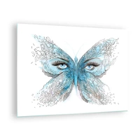 Üveg kép - Egy pillangó kék szárnyakkal és emberi szemekkel művészi stílusban. - 70x50cm - Modraszek eros - Modern fali dekoráció nappalihoz és hálószobához ARTTOR