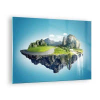 Üveg kép - Egy úszó sziget hegyekkel, vízeséssel és zöld növényzettel - 70x50cm - Fantasztikus sziget - Modern fali dekoráció nappalihoz és hálószobához ARTTOR