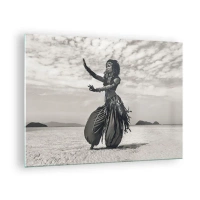 Üveg kép - Fekete-fehér fénykép egy táncosról a sivatagban - 70x50cm - A déli szigetek tánca - Modern fali dekoráció nappalihoz és hálószobához ARTTOR