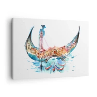 Vászonkép - Velence gondola alakú akvarell kompozíciója - 70x50cm - A városon keresztül hajózunk - Modern fali dekoráció nappalihoz és hálószobához ARTTOR