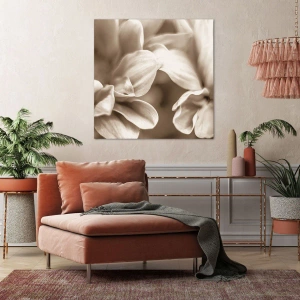 A "Gyengéd, mint egy mosoly" egy elegáns, 70x50 cm-es vászonkép, amely virágok közeli képét ábrázolja finom szépia tónusban. A színek finomsága és a lágy kontúrok klasszikus és kifinomult jelleget kölcsönöznek a műnek, tökéletesen kiegészítve az elegáns és harmonikus belső tereket.