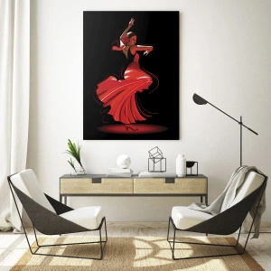 Falikép - A flamenco tüzes szelleme - Flamenco táncosnő piros ruhában, fekete háttér előtt