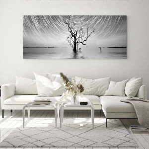 Falfestmény - A természet szimfóniája - Fekete-fehér tájkép fával és csillagösvényekkel