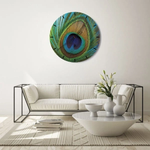 - Ez a 30x30 cm-es kerek falióra színes pávatoll motívummal díszített. A gazdag színpaletta és az egyedi textúra eleganciát és egzotikus jelleget kölcsönöz bármilyen enteriőrnek.