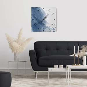 Falióra, Óra - Absztrakt kompozíció kék foltokkal fehér alapon - 30x30cm - Kék tüll - Modern fali dekoráció nappalihoz, konyhához és hálószobához ARTTOR