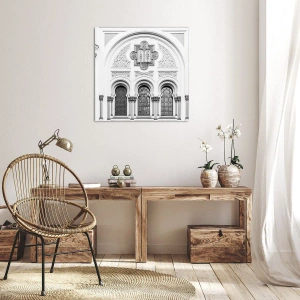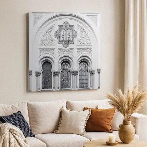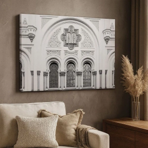Vászonkép - A homlokzat építészeti részletei monokróm stílusban - 70x50cm - A kultúrák határán - Modern fali dekoráció nappalihoz és hálószobához ARTTOR