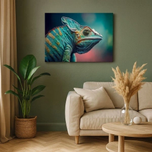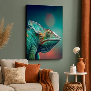 - Élénk zöld és narancssárga kaméleont ábrázoló vászonkép. Feltűnő és egzotikus kompozíció, amely tökéletes a modern enteriőrökbe.
