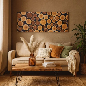 AHány évesnek nézek ki? egy egyedi vászonkép, amely fa rönk keresztmetszetű mintát ábrázol. A természetes fa meleg árnyalatai és a változatos erezetminták harmonikus és inspiráló kompozíciót hoznak létre. Az egyedi fa textúra hitelességet kölcsönöz a képnek, geometrikus elrendezése pedig modern jelleget kölcsönöz neki.