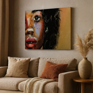- Egy művészi festmény, amely egy nőt ábrázol intenzív és kifejező színekkel. Az egyedi festési technika kiemeli a részleteket és az érzelmeket. Tökéletes modern belső terekbe, például nappaliba vagy hálószobába.