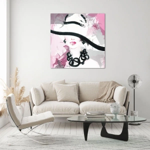 Üveg kép - Fekete és rózsaszín hölgy portréja - 50x50 cm