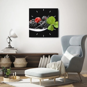 Falióra, Óra - Málna és szeder zöld levelek hátterében - 30x30cm - A frissesség íze - Modern fali dekoráció nappalihoz, konyhához és hálószobához ARTTOR