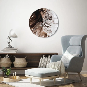 A "Kontredanse Colors" falióra egy egyedi díszítőelem, amely ötvözi a modern dizájnt és a művészi kifejezést. Az óra számlapja dinamikus absztrakt minta barna és fehér árnyalatokban, harmonikus és szemet gyönyörködtető kompozíciót hozva létre. Ez az egyedi motívum tökéletesen illik a modern és minimalista enteriőrökbe.