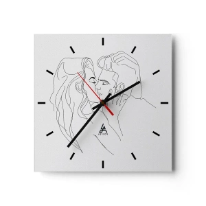 Falióra, Óra - Egy minimalista rajz egy szerelmes párról - 30x30cm - Ugyanaz a vonalón - Modern fali dekoráció nappalihoz, konyhához és hálószobához ARTTOR