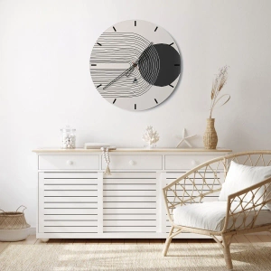 Az óra 4 mm vastag biztonsági üvegből készül. Az óra gyártási technológiája megfelel a PN-EN 12600: 2004 szabvány szerinti 2B2 biztonsági osztálynak, amely garantálja az ütésállóságot. Az üvegen lévő óra felakasztható - az óra hátuljára fém akasztó van rögzítve, és egy habtávolság szabályozza az óra és a fal közötti egyenletes távolságot. Az óra csendes úszó mechanizmussal rendelkezik, amely 1,5 V-os elemmel működik - AA elemmel (az elem nem tartozék).