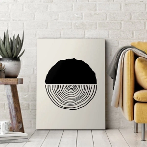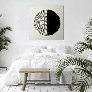Vászonkép - Egy absztrakt fekete-fehér motívum, melyet egy geometrikus tagolású fa keresztmetszete ihletett. - 70x50cm - Fele fele - Modern fali dekoráció nappalihoz és hálószobához ARTTOR