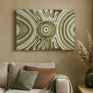 - Ez a festmény zöld és barna árnyalatú absztrakt mintákat ábrázol. Feltűnő és elegáns dekoráció, amely harmóniát és stílust visz bármilyen enteriőrbe.