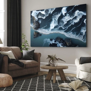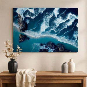 - Egy festmény, amely madártávlatból ábrázolja az óceán hullámainak partra csapódását. Dinamikus és harmonikus tájkép, amely frissességet és nyugalmat visz az enteriőrökbe.