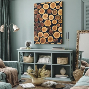 AHány évesnek nézek ki? egy egyedi vászonkép, amely fa rönk keresztmetszetű mintát ábrázol. A természetes fa meleg árnyalatai és a változatos erezetminták harmonikus és inspiráló kompozíciót hoznak létre. Az egyedi fa textúra hitelességet kölcsönöz a képnek, geometrikus elrendezése pedig modern jelleget kölcsönöz neki.