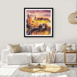 Poszter fehér keretben - Festői kilátás a városra a lenyugvó nap fényében - 50x70cm - Történet és mese - Modern fali dekoráció nappalihoz és hálószobához ARTTOR
