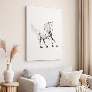 - Ez a festmény egy vágtató ló vázlatát ábrázolja fekete-fehér árnyalatokban. Minimalista faldekoráció, amely eleganciát és dinamizmust kölcsönöz bármilyen enteriőrnek.