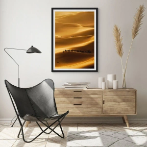 Poszter fehér keretben - Egy tevekaraván a sivatagi dűnéken - 50x70cm - Karaván a sivatagi hullámokban - Modern fali dekoráció nappalihoz és hálószobához ARTTOR