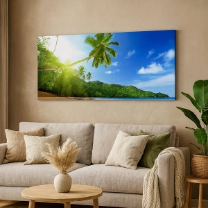 A trópusi tengerpart motívuma a szabadságot, a pihenést és a természet közelségét szimbolizálja, így ez a kép ideális választás azok számára, akik értékelik az egzotikus tájak szépségét és a finom belső dekorációkat. Remek ajándékötlet utazási és nyári rajongóknak is.