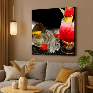 A "Conjure Flavor" egy dinamikus vászonkép, amely egy színes koktélt ábrázol eperrel, ananásszal és jégkockákkal díszítve. Ez a frissességgel és energiával teli jelenet tökéletesen illeszkedik a modern enteriőrökbe, intenzív színeivel és a fekete háttérrel kontrasztos megjelenésével vonzza a tekintetet.