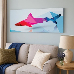 Vászonkép - Geometrikus cápa sziluett rózsaszín és kék árnyalatokban - 70x50cm - Cápa a kristály térben - Modern fali dekoráció nappalihoz és hálószobához ARTTOR