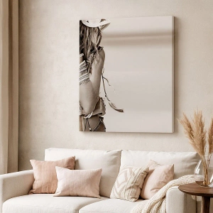 • Nő, Boho, Vintage, Fekete-fehér, Emberek, Divat, Előszobába, nappaliba, hálószobába, , Szürke, fekete-fehér, Négyzetes