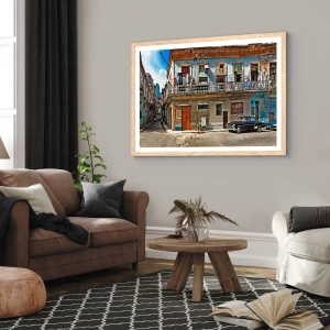 Poszter világos tölgy keretben - Havannai hangulat - 50x50 cm