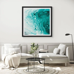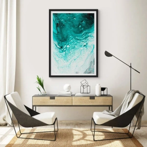 Poszter fehér keretben - Absztrakt minta türkiz és fehér színben - 50x70cm - Elolvadni fehérben és türkizben - Modern fali dekoráció nappalihoz és hálószobához ARTTOR