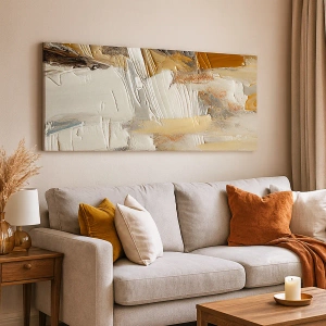 Vászonkép - Texturális absztrakció földszínekben és fehérben - 70x50cm - Színes rétegződés - Modern fali dekoráció nappalihoz és hálószobához ARTTOR