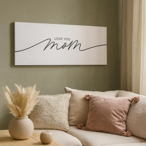 - Minimalista, 70x50 cm-es vászonkép, fehér háttér előtt a "Szeretlek, anya" felirattal. Tökéletes ajándék vagy elegáns lakberendezési darab.