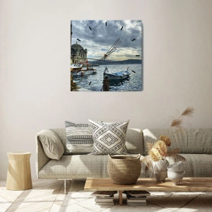 Falióra, Óra - Történelmi építészet és hajók egy híd és felhők hátterében - 30x30cm - A világok határán - Modern fali dekoráció nappalihoz, konyhához és hálószobához ARTTOR