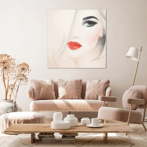 Vászonkép - Egy minimalista portré egy kék szemű és vörös ajkú nőről. - 70x50cm - Hipnotizál és kábít - Modern fali dekoráció nappalihoz és hálószobához ARTTOR