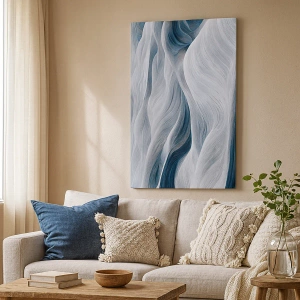 • Ez a 70x50 cm-es vászonkép hullámos vonalakat ábrázol kék és fehér árnyalatokban. Tökéletes modern enteriőrökbe, harmóniát és finom művészi kifejezést kölcsönöz.