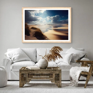 Poszter világos tölgy keretben - Tengerpart, vad tengerpart - 50x50 cm